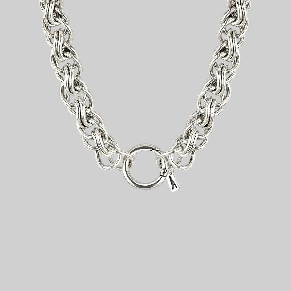 Chunky Silver wheat collar chain with circle clasp. Wear it solo or add more layers for the ultimate style statement.