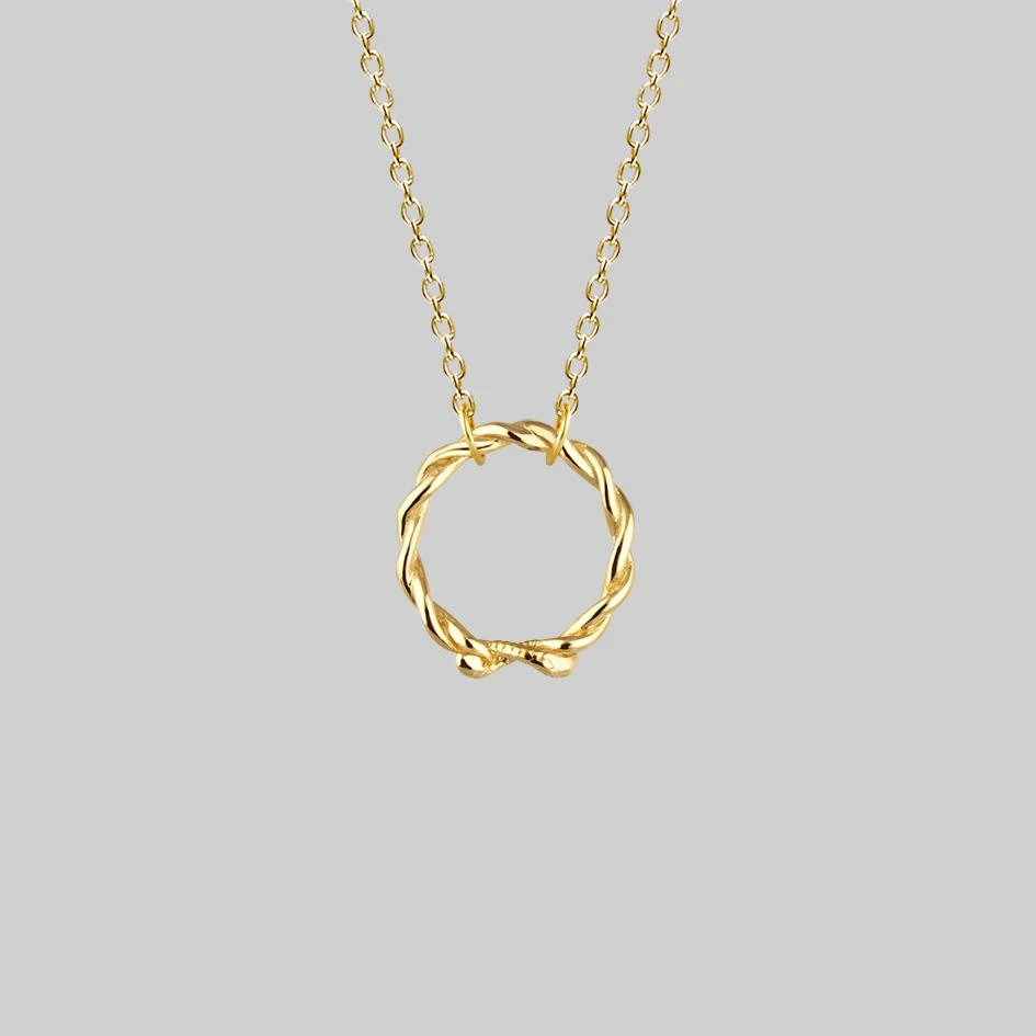 Double headed twisted snake loop hangs from a delicate chain necklace.