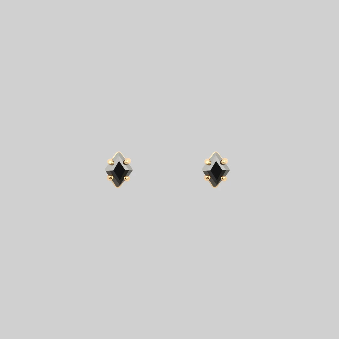 Tiny diamond shaped Onyx gemstone stud earrings.
