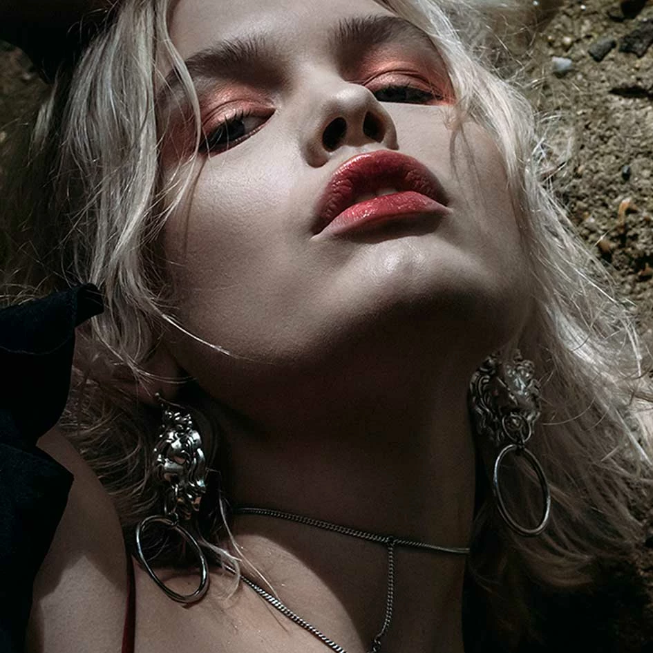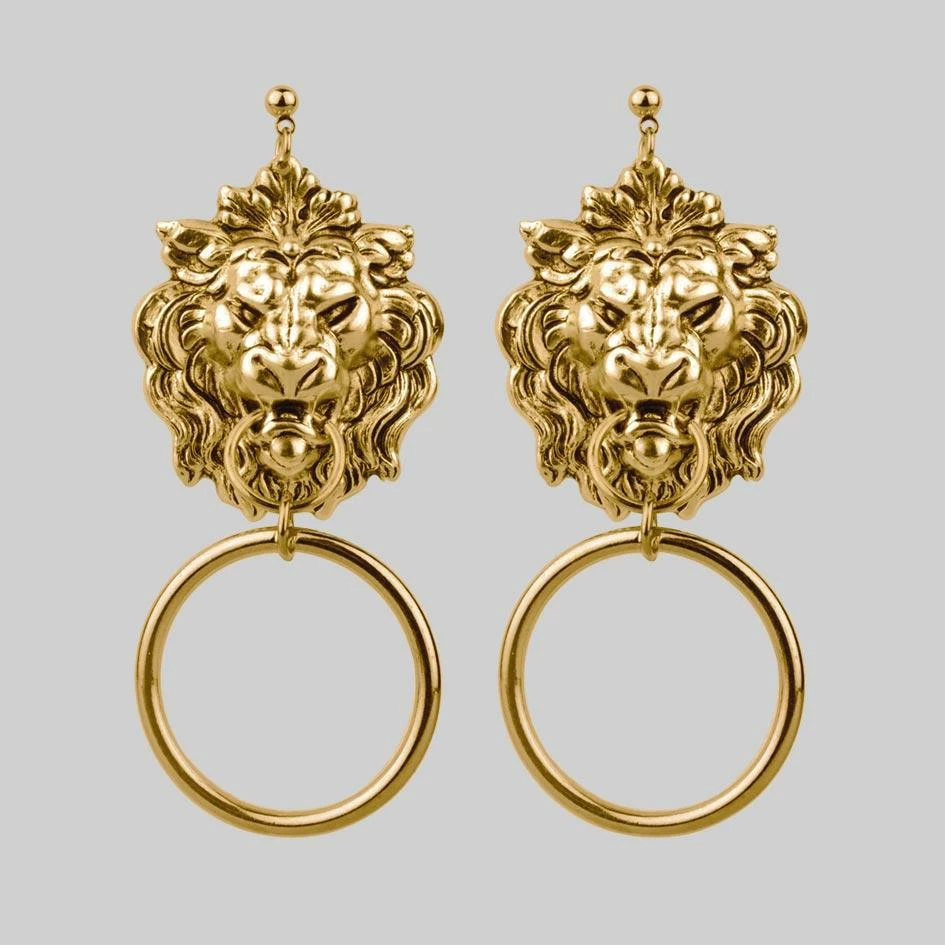 Fierce gold lion door knocker earrings.