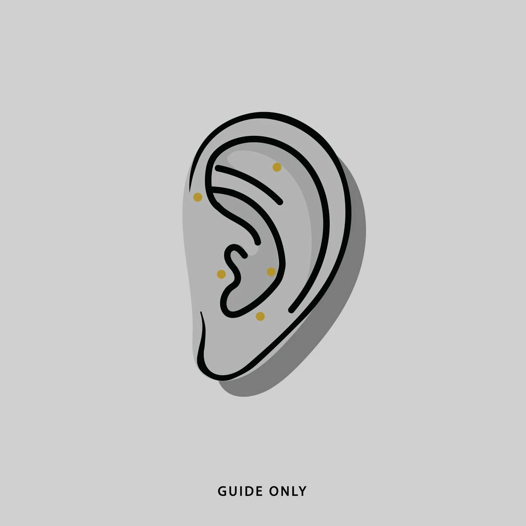 Can be worn in a helix, tragus, anti-tragus, flat or conch piercing.