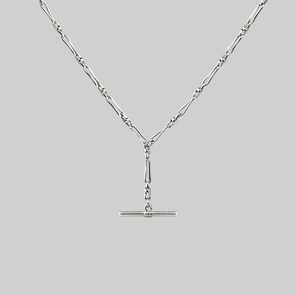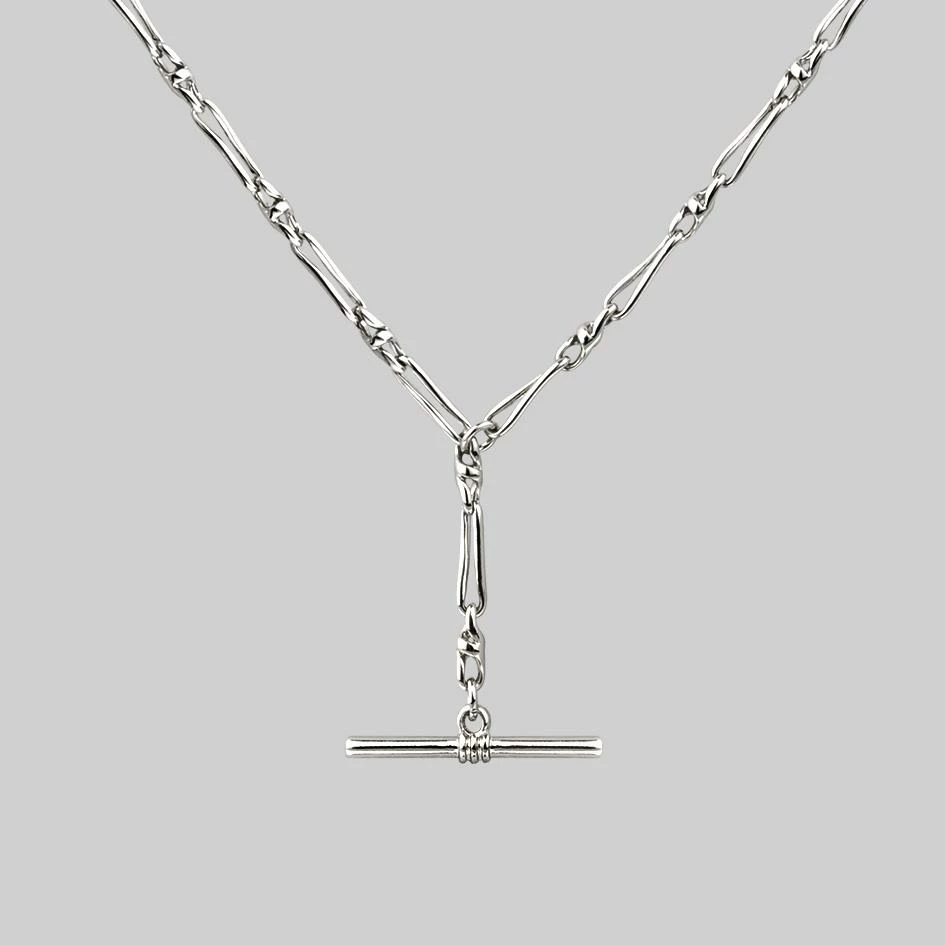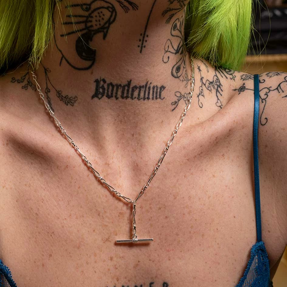 The ultimate layering chain featuring a T-bar and twisted Figaro chain.