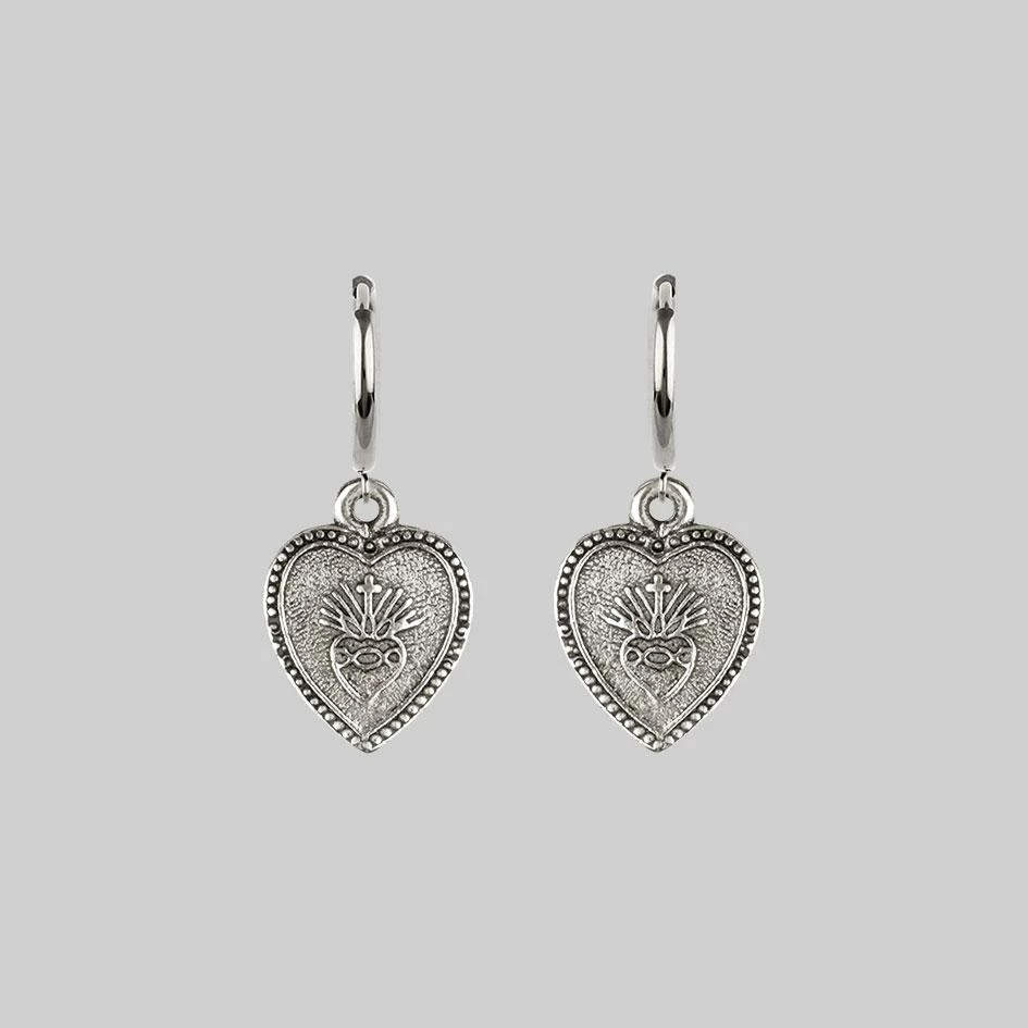 Silver Sacred heart hoop earringsÂ