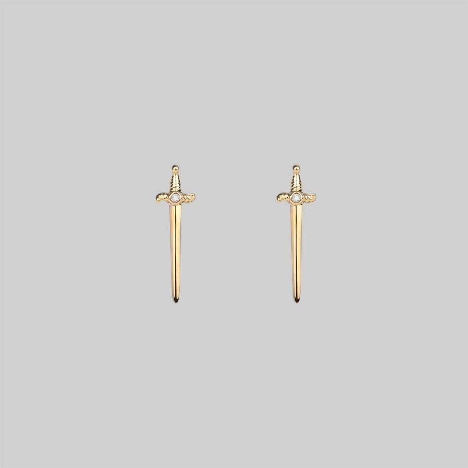Deathly dagger earrings featuring tiny Cubic Zirconia crystal centers.