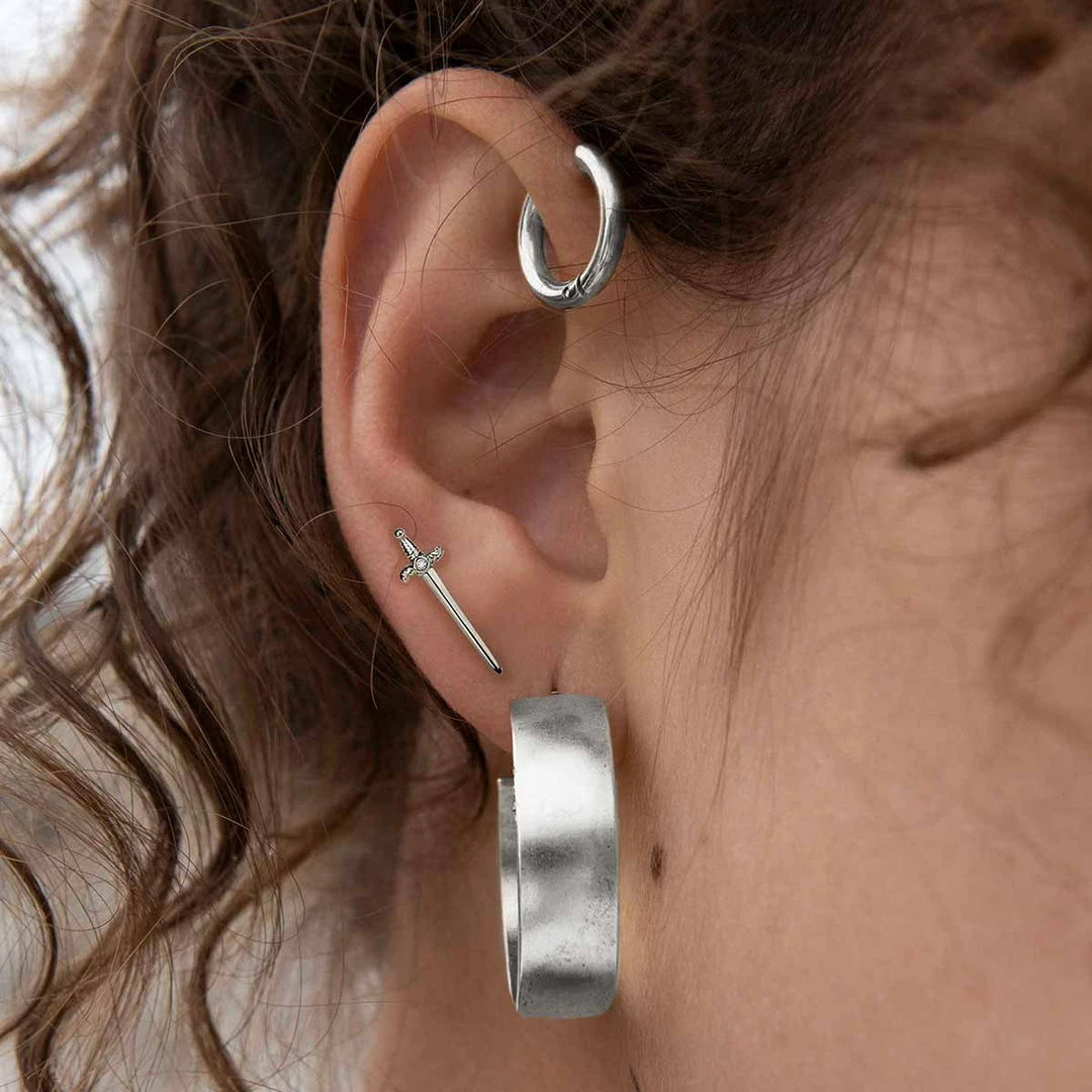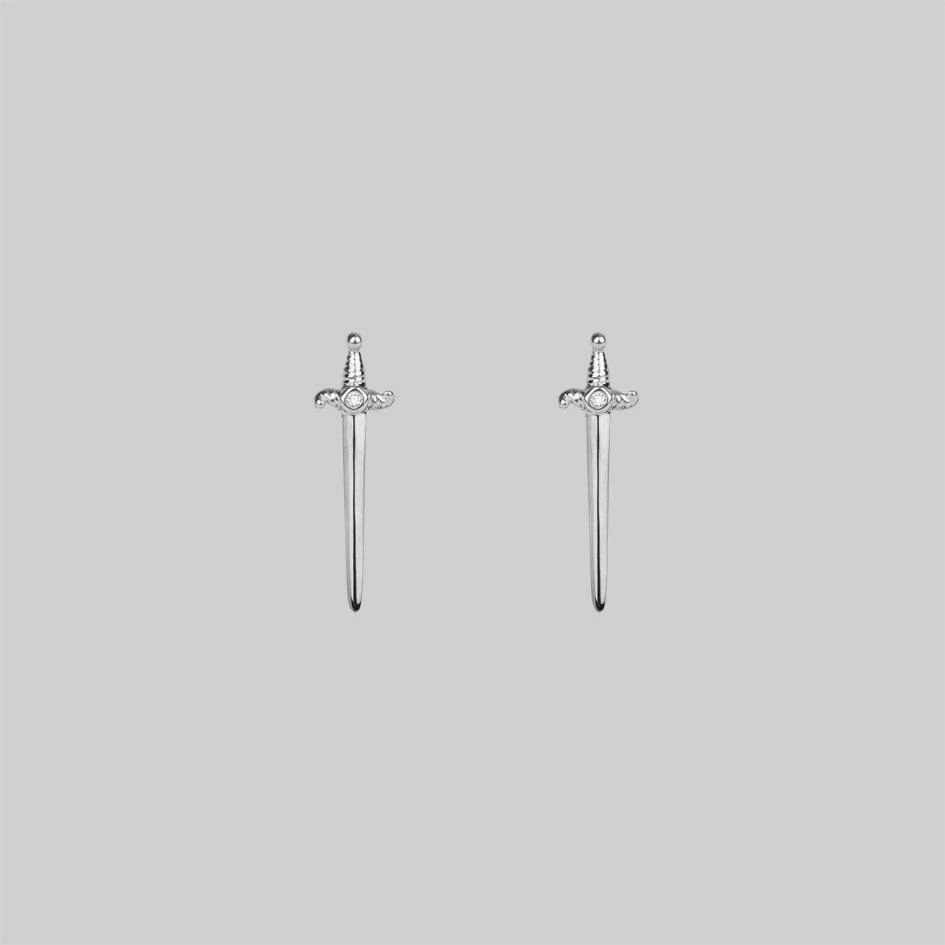 Deathly dagger earrings featuring tiny Cubic Zirconia crystal centers.