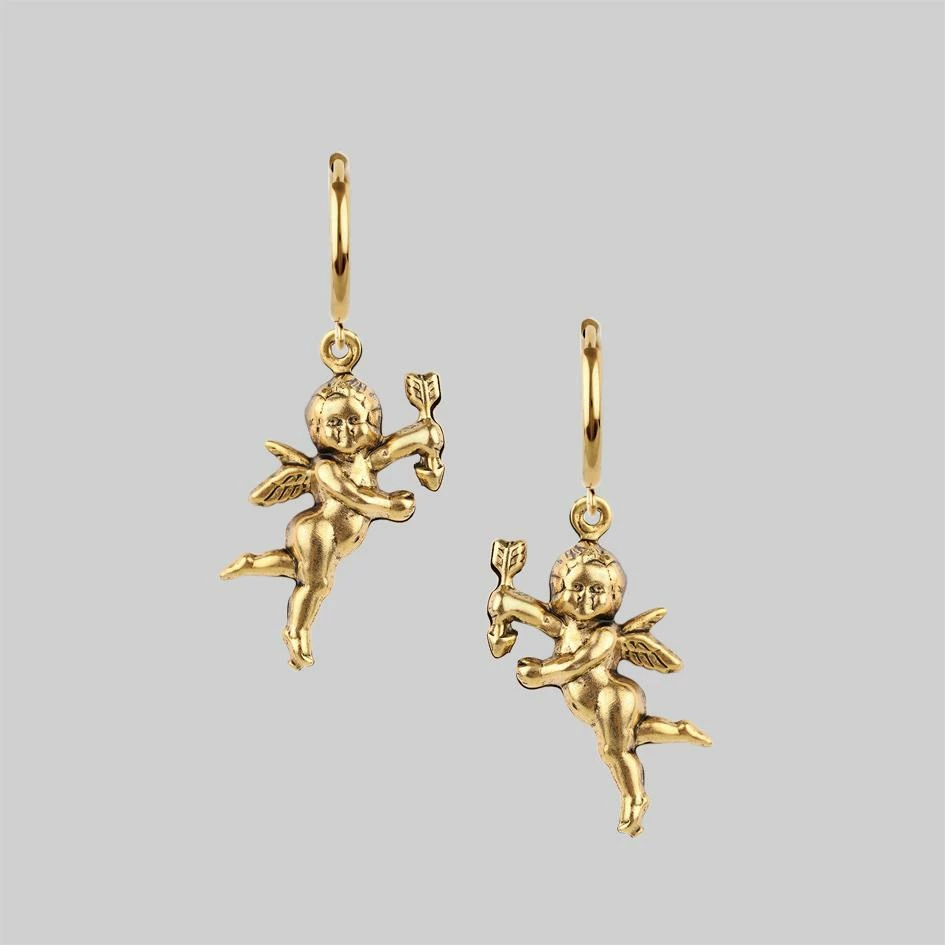Super cute double sided Renaissance inspired Cherubs hang on gold clicker hoops.