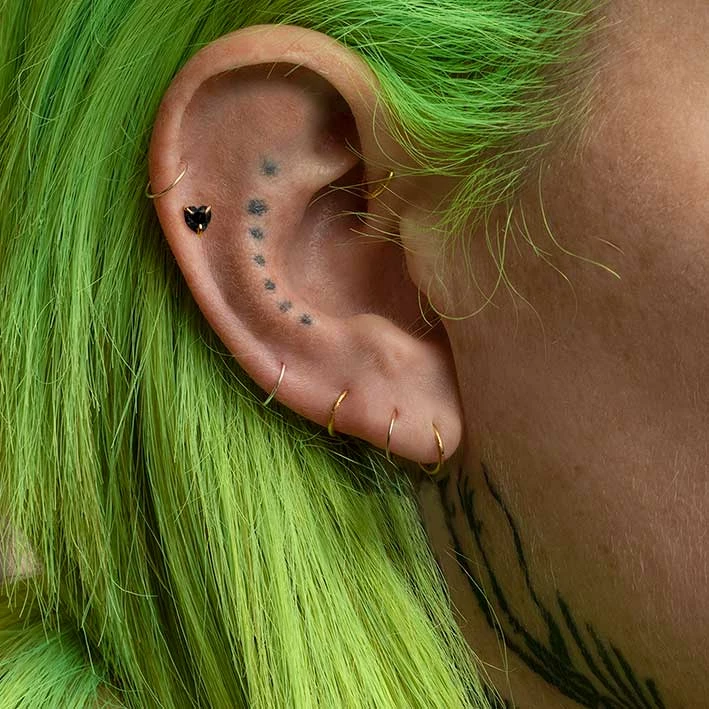 Can be worn in a tragus, anti-tragus, conch, helix, flat or forward helix piercing.