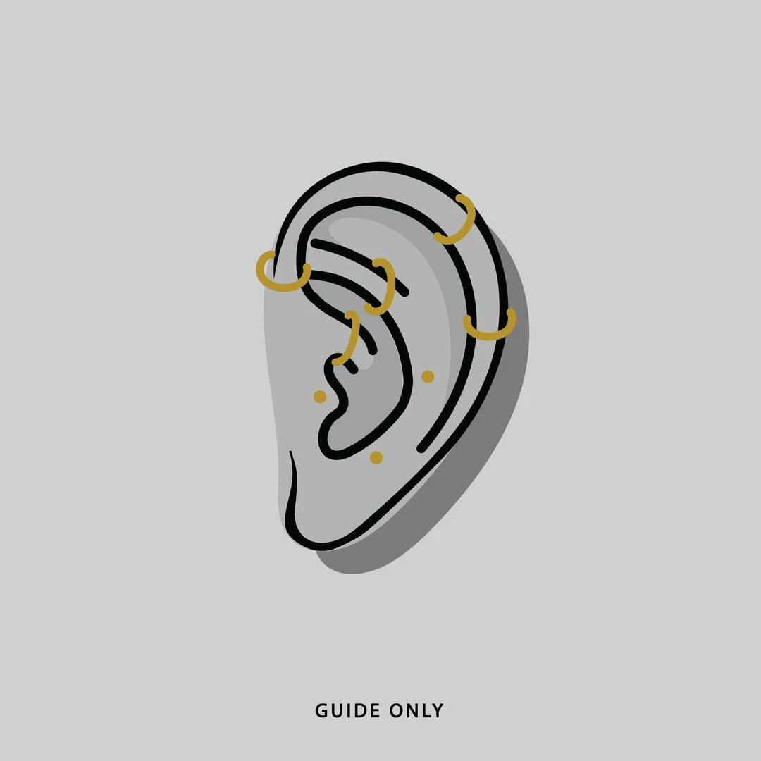 Everyone’s piercing location and ear shape are different! Ensure the internal diameter of the hoop will fit your desired piercing/position. Ask someone to help you measure the space of your desired location with a ruler. Jewellery for piercings is non exchangeable or returnable.