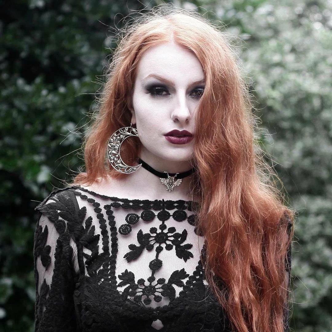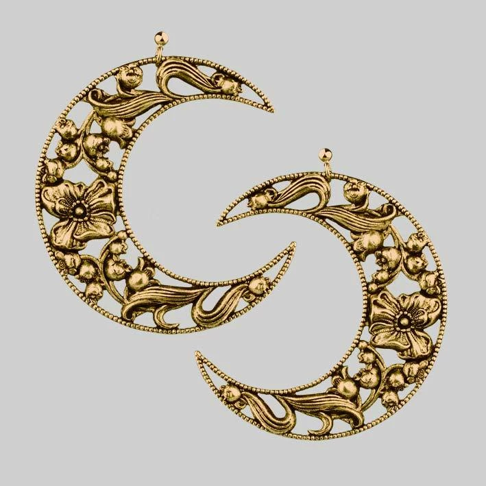 The ultimate Witch earrings. Huge moon crescents with fine floral details.