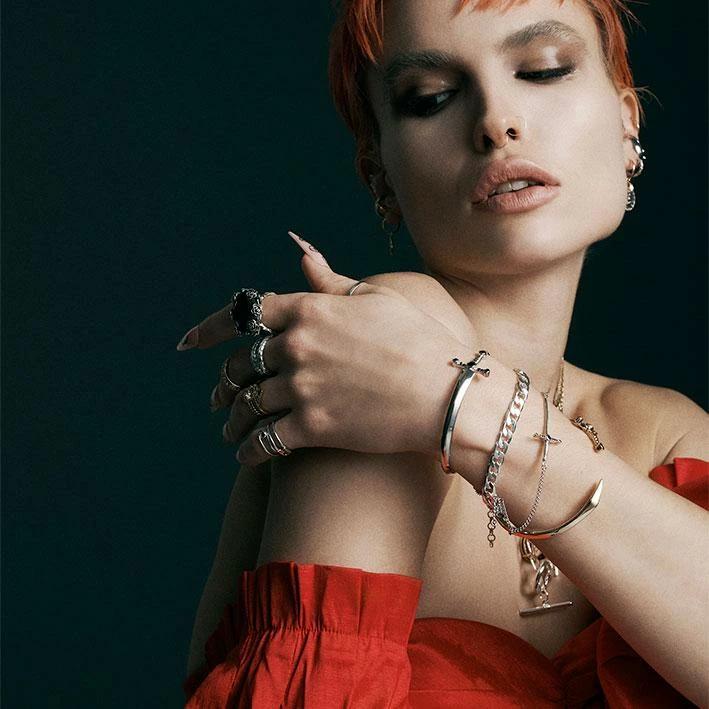 Fine chain bracelet featuring a deathly dagger with Black Spinel gemstones.Â