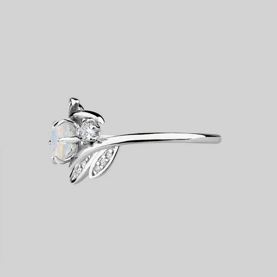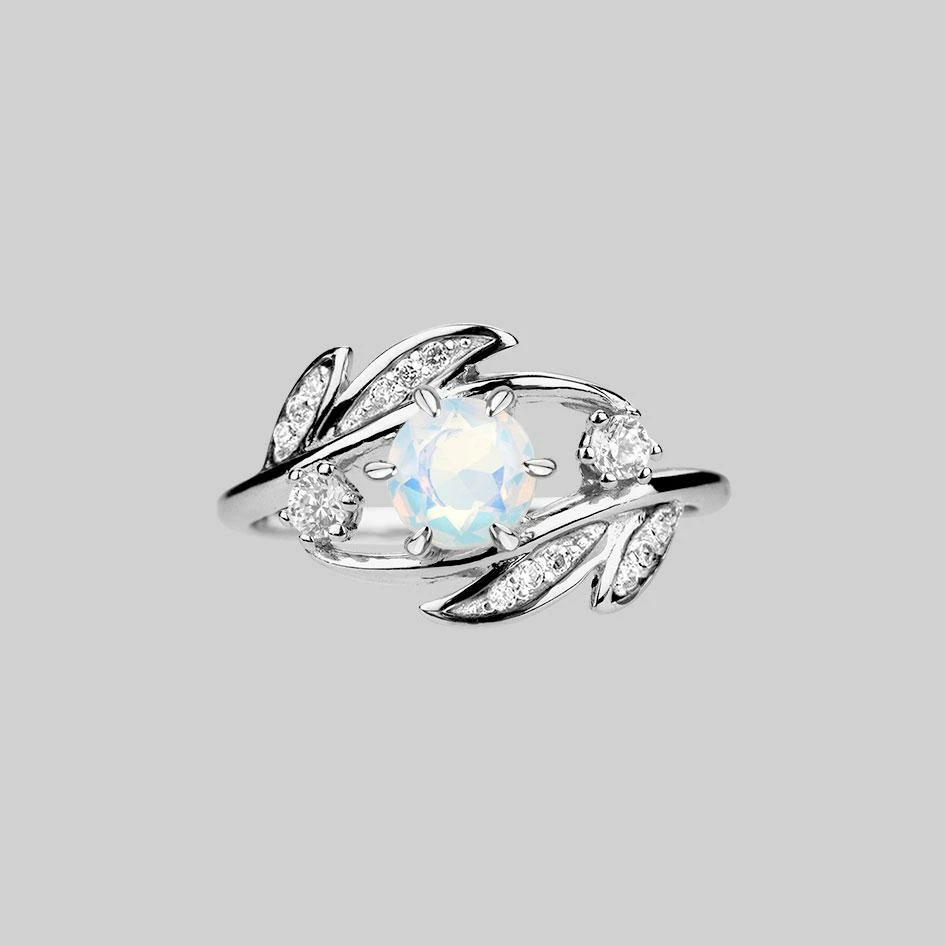 Inspired by eras past, this delicate yet stand-out design features a stunning cut Opal surrounded by luscious leaf detail encrusted with sparkling Cubic Zirconia.