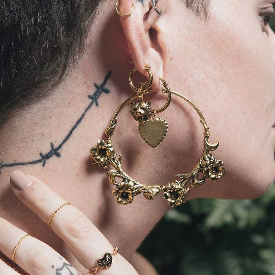 Huge Lux hoop statement earrings featuring 3D wild rose detail.