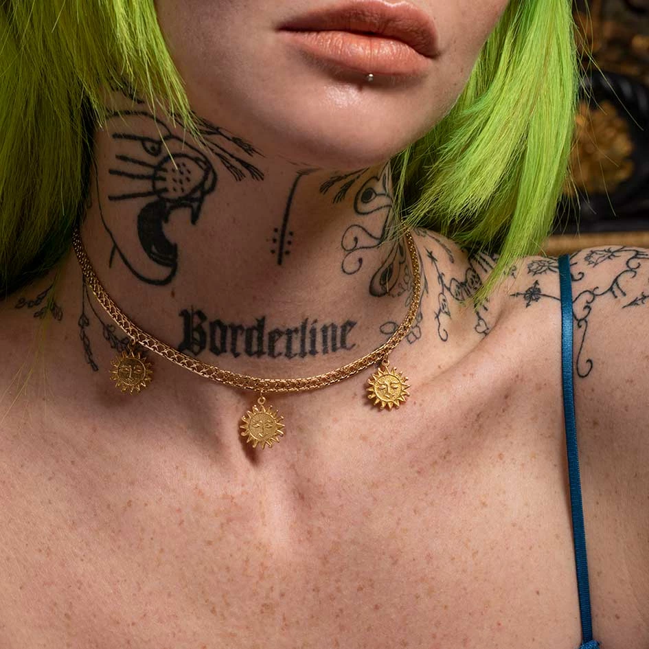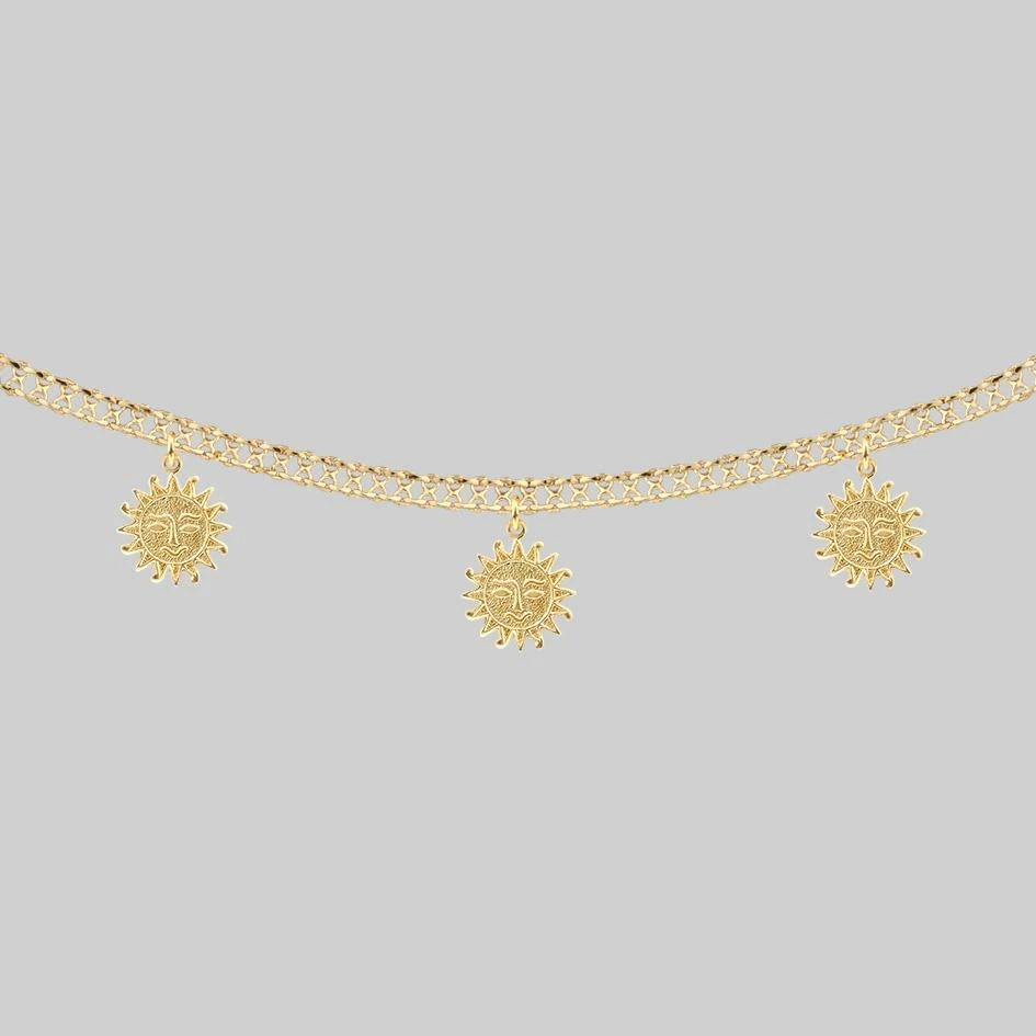 Multi sun charm with face detail collar.
