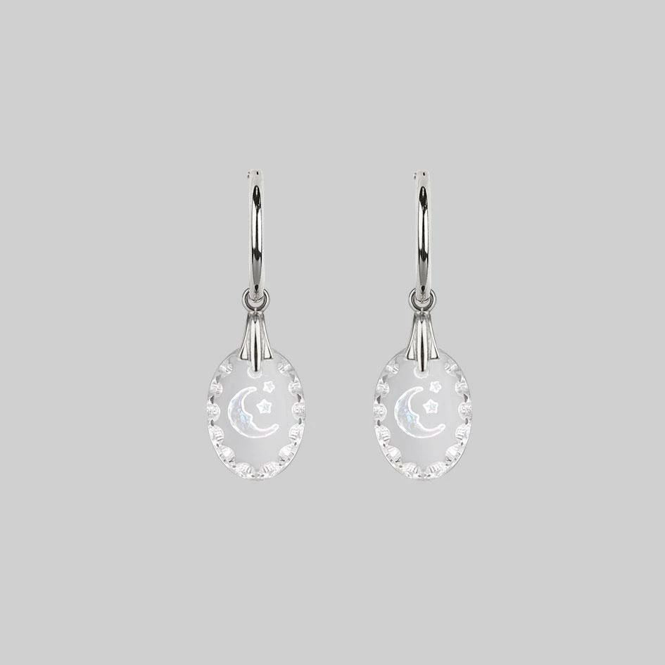 Vintage inspired scalloped edge glass Intaglio, with intricately engraved moon & star.