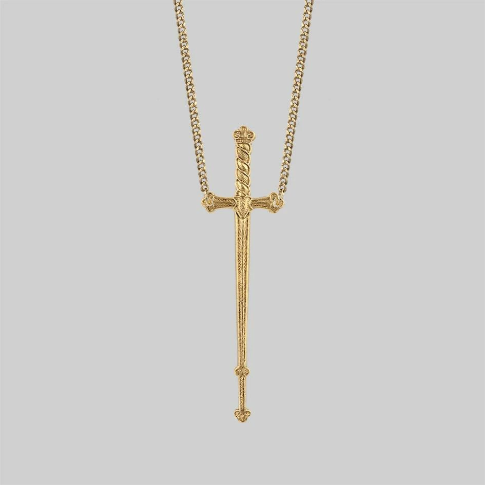 Fierce long sword gold layering necklace.
