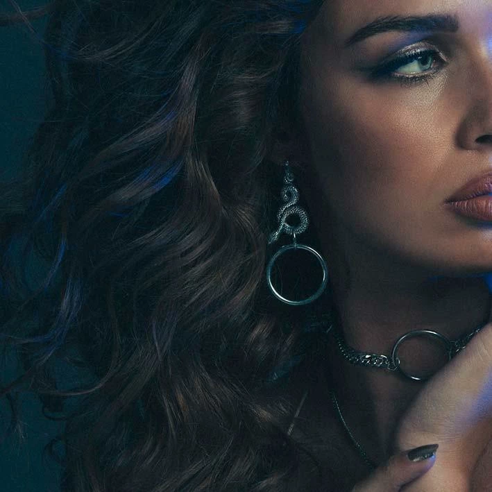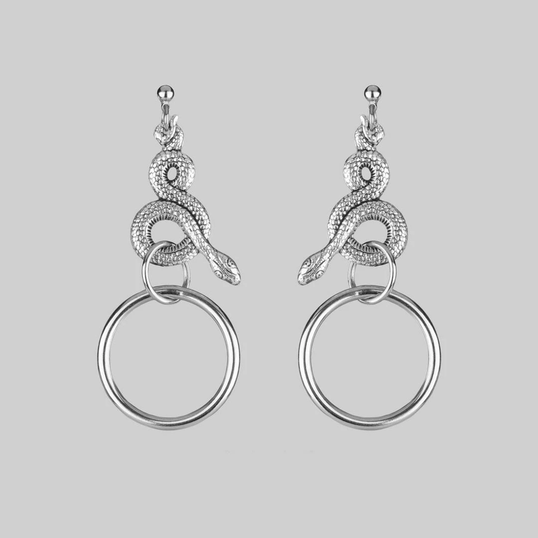 Detailed snake & ring earrings.