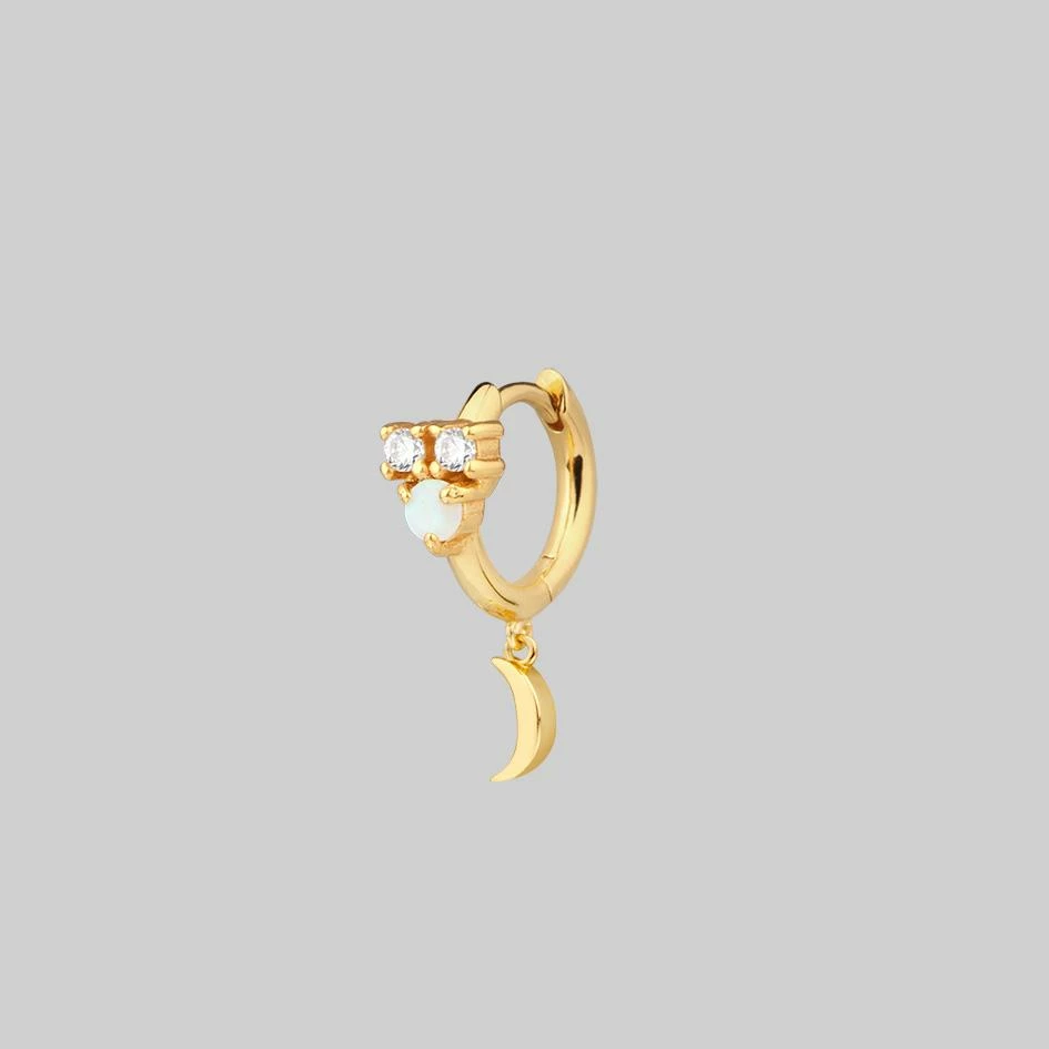 Celestial cluster clicker hoop earrings featuring an Iridescent central Opal gemstone and Cubic Zirconia stars.
