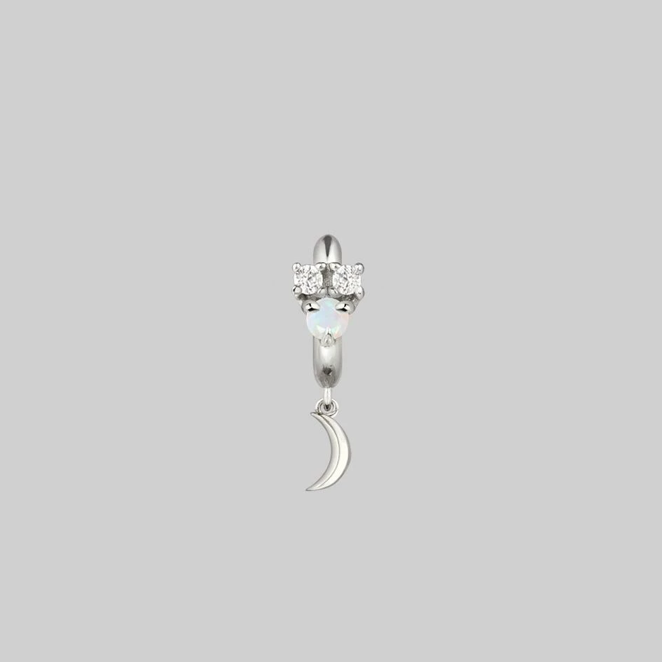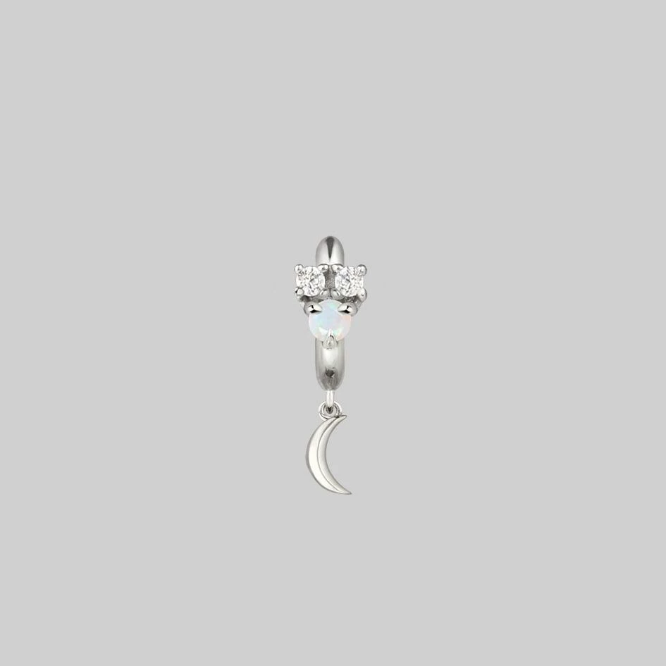 Celestial cluster clicker hoop earrings featuring an Iridescent central Opal gemstone and Cubic Zirconia stars.