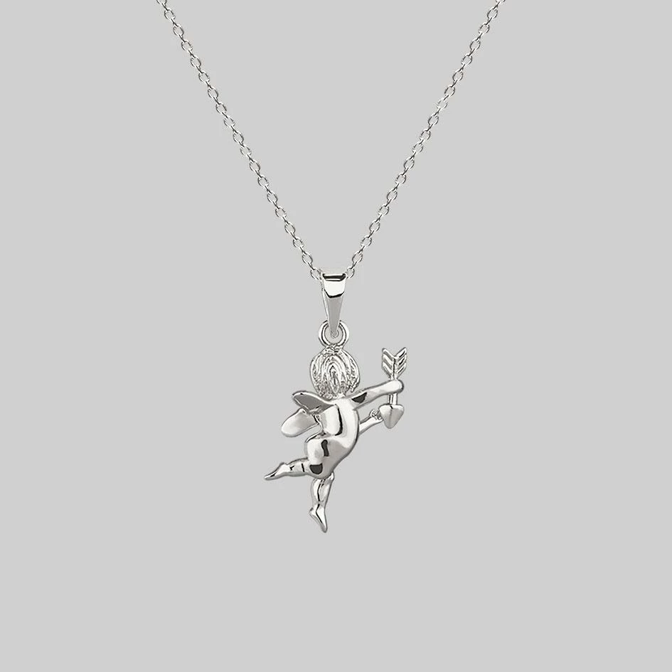 Mismatch cherub necklaces, inspired by the mythological tale of lovers Cupid and Psyche.