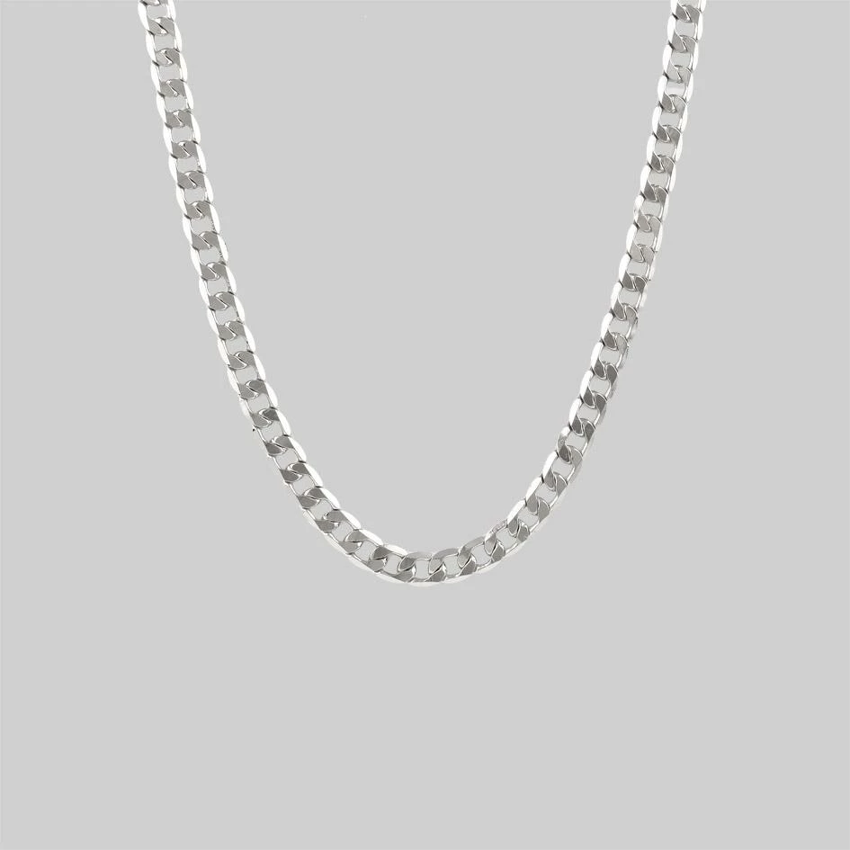 Simple curb chain layering necklace in silver.