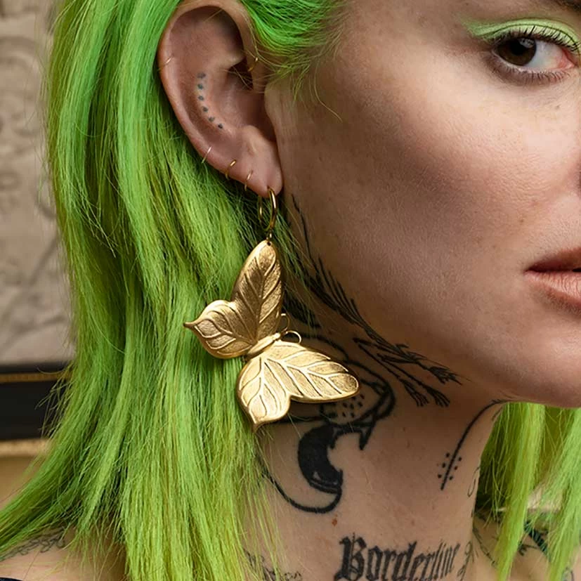 Huge statement Butterfly hoop earrings in gold.