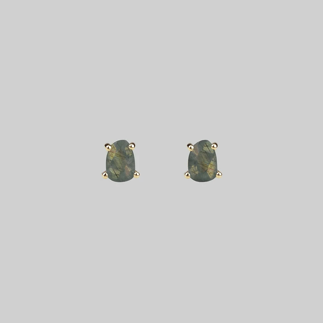 Simple earrings featuring claw set faceted pieces of Labradorite gemstone.