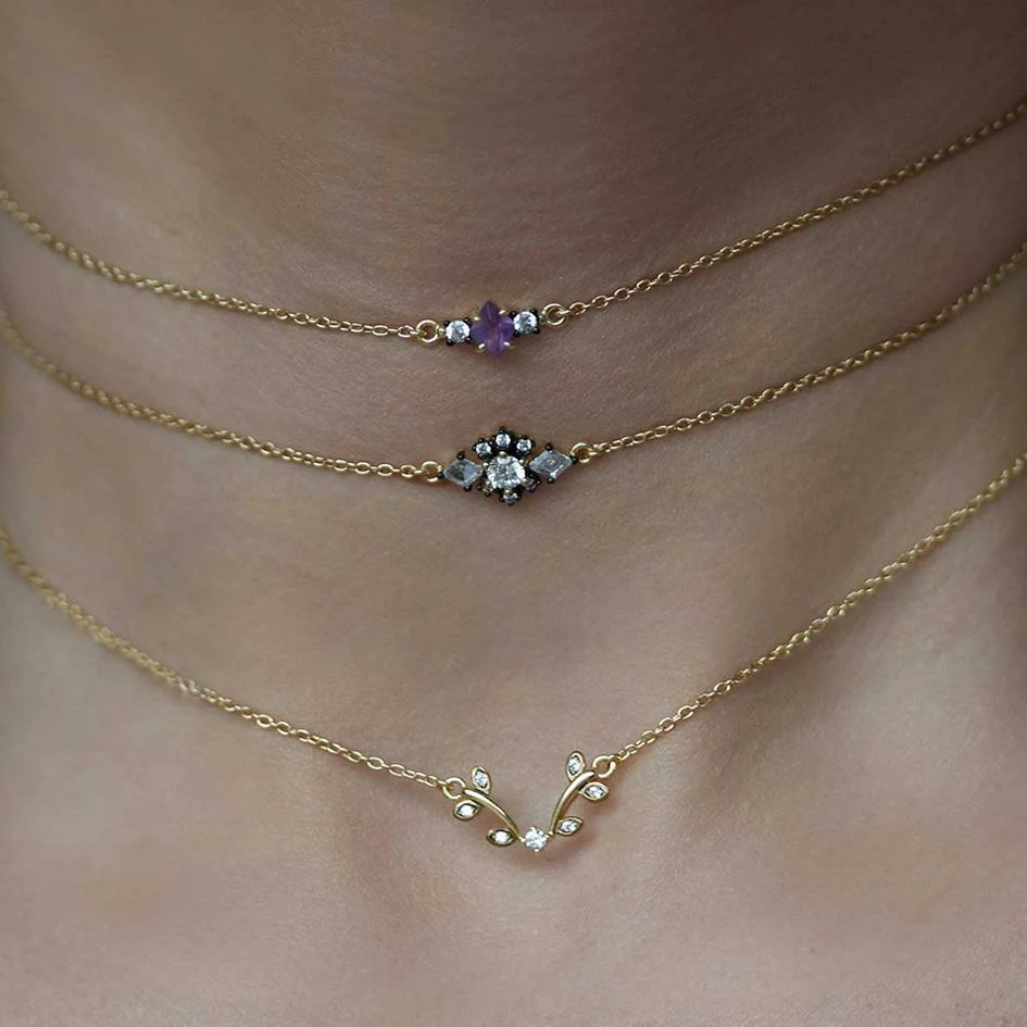 Sterling Silver dainty chain choker featuring a delicate twine of leaves, each encrusted with Cubic Zirconia crystal.