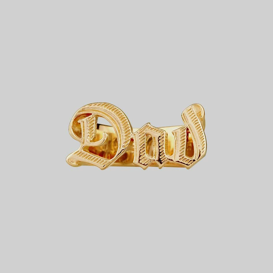 Old English gothic lettering Dad ring. Chunky, detailed letters for an authentic vintage style. Not just for Dads; wear in honour of your Dad too.