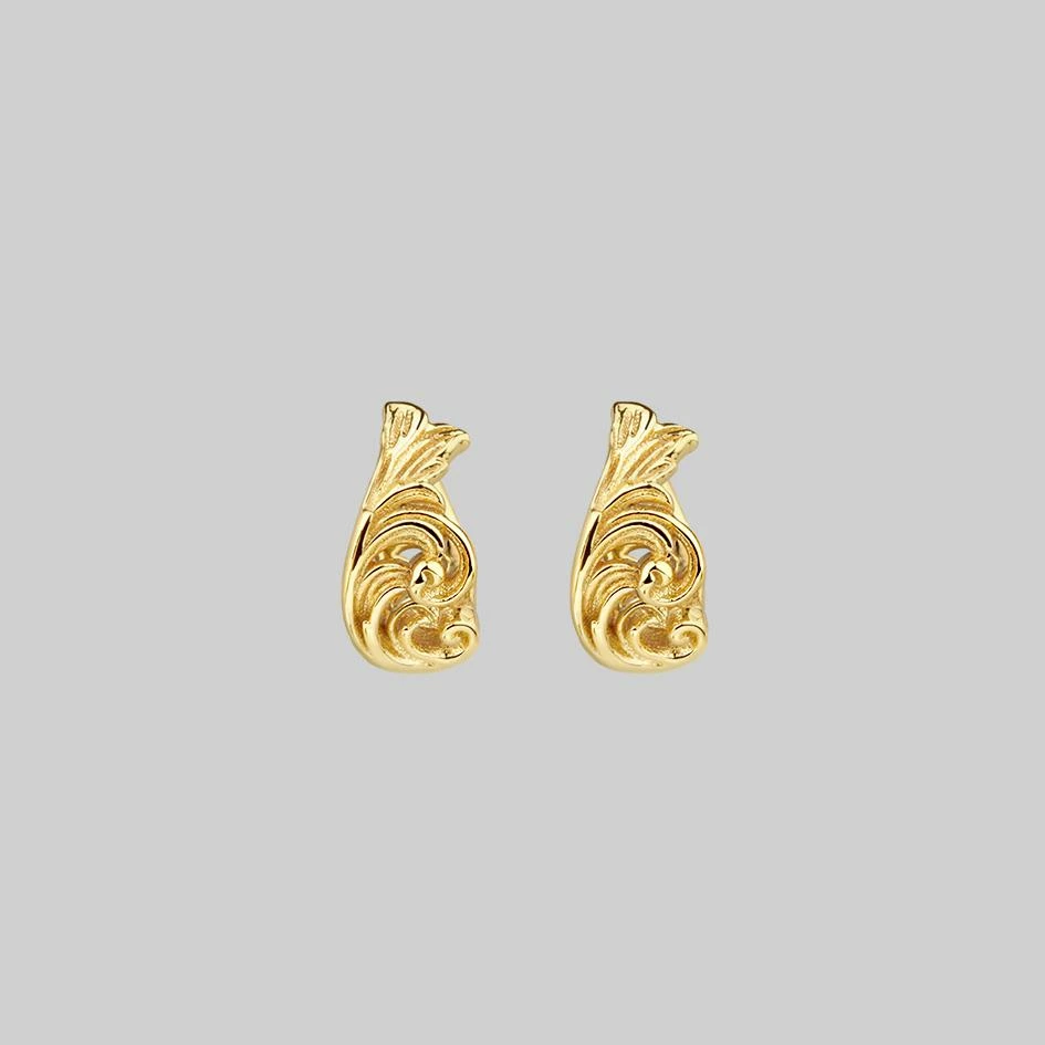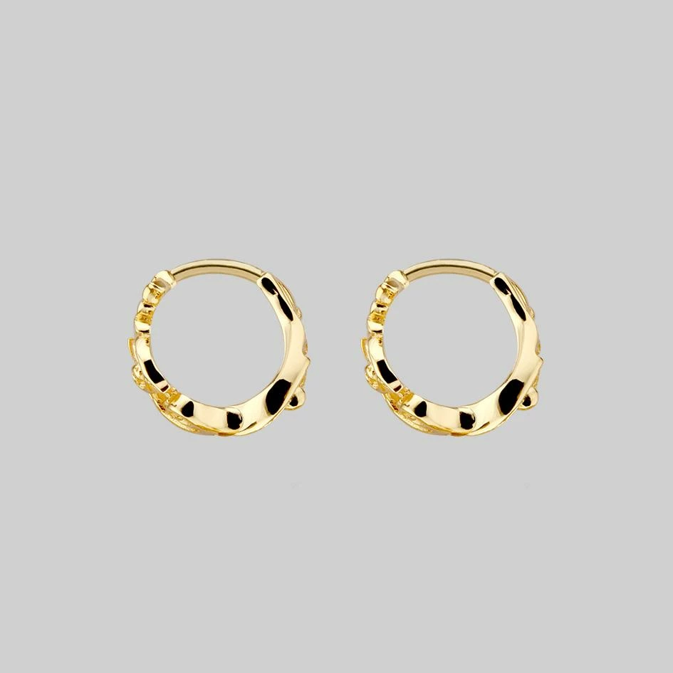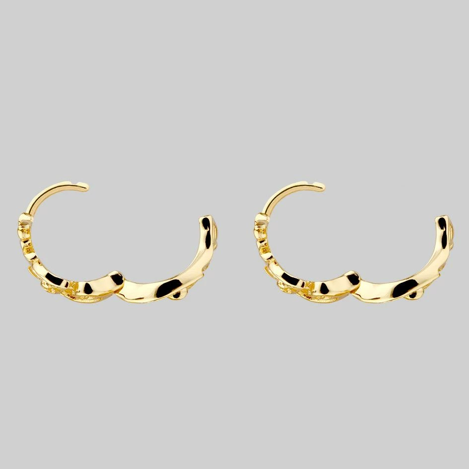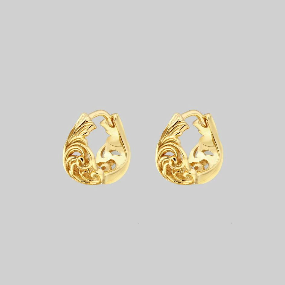 Ornate baroque swirl detail hoop earrings.