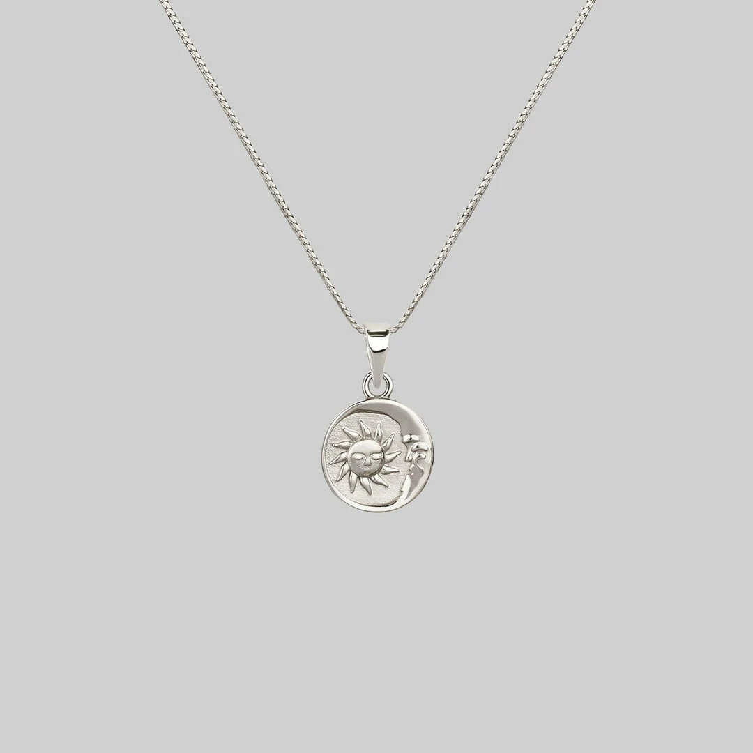 Celestial Sun and Moon medallion necklace.