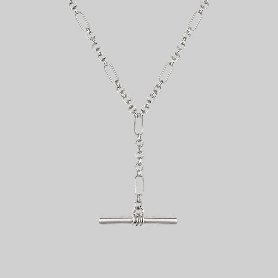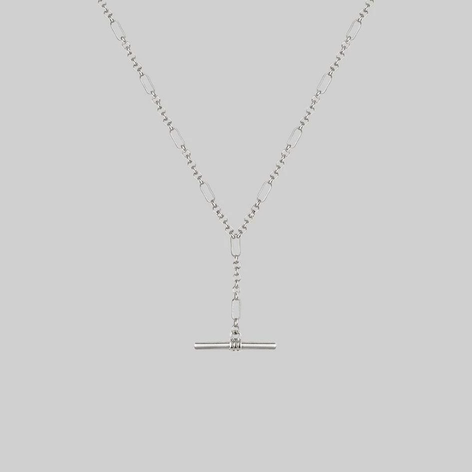 The ultimate layering T-Bar necklace featuring fancy Figaro chain with Belcher links.