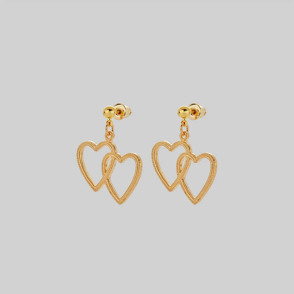 Two entangled hearts on delicate drop studs. The perfect piece to stack up your ears.