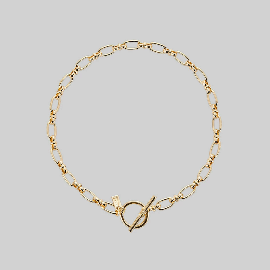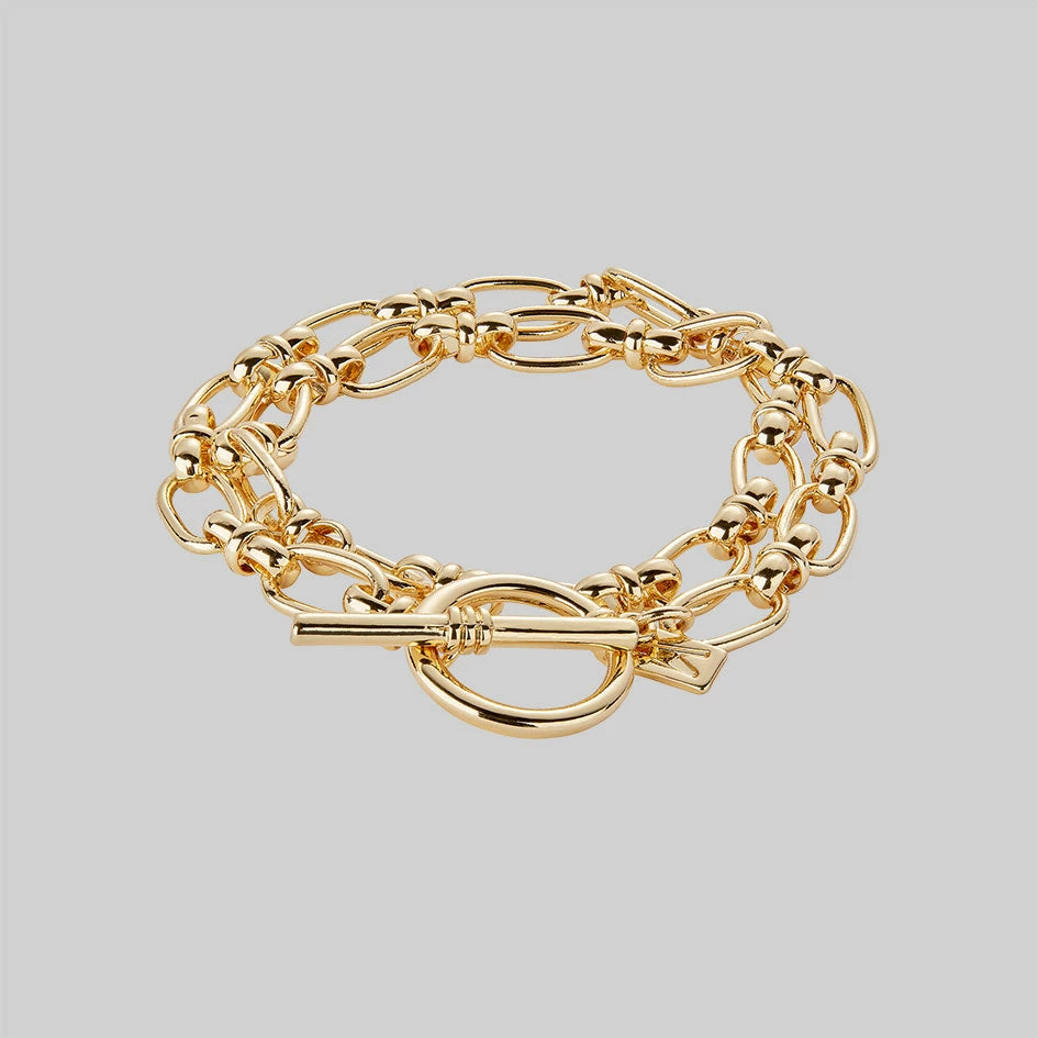 Double wrap fancy cable style chain bracelet featuring a T-Bar clasp, the ideal piece for layering. Can also be worn as a collar necklace.
