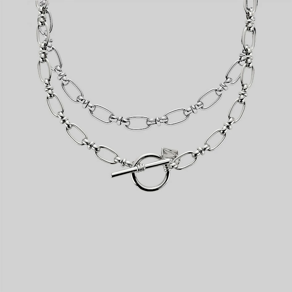 Double wrap fancy cable style chain necklace featuring a T-Bar clasp, the ideal piece for layering.