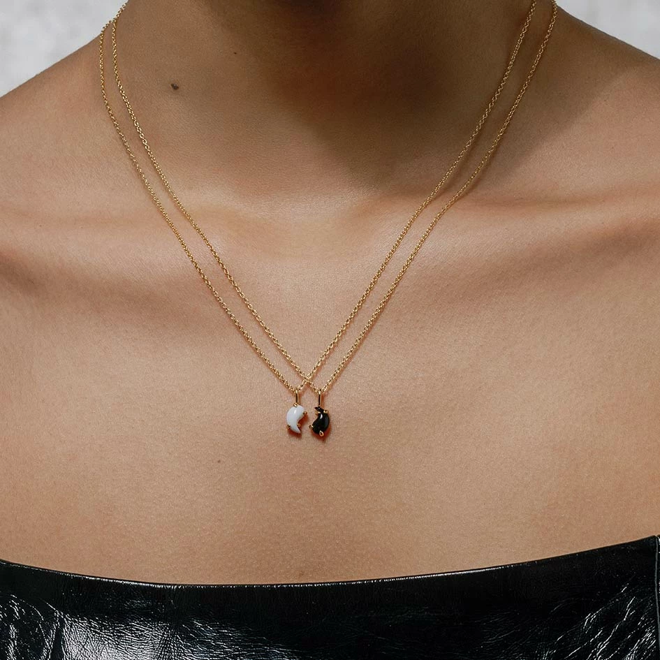 Buy a single necklace to wear alone, choose the side that represents you the most! Or buy a pair and share with a friend or wear together for an effortless stacked look.