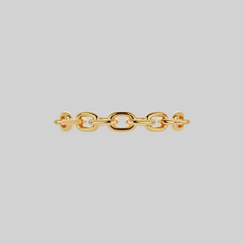 A nostalgic nod to the 90s. Stack the single chunky chain ring with other rings for an undeniably chic look.