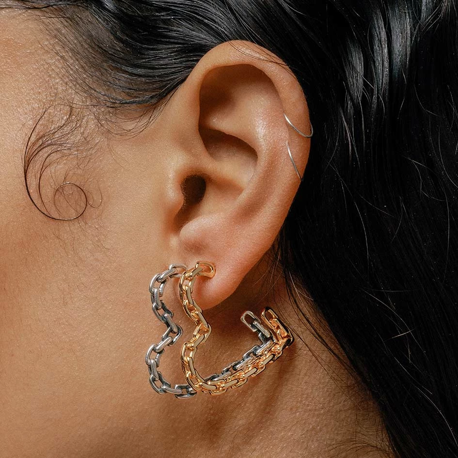 The links of love. Chain link heart hoops, a nostalgic nod to the 90s with a modern twist.Â