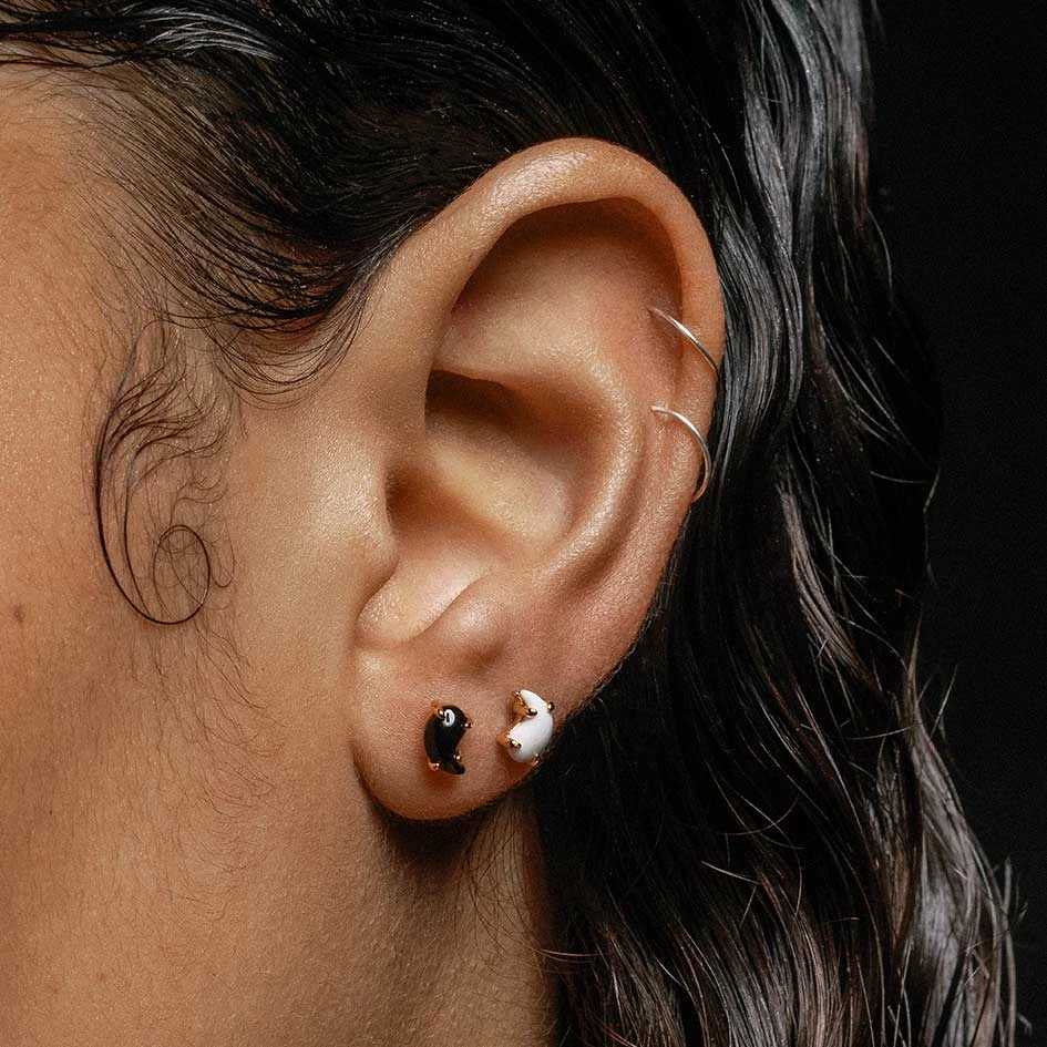 Keep the balance with the Yin & Yang earrings. Elevate your ear stack with these mismatched studs.